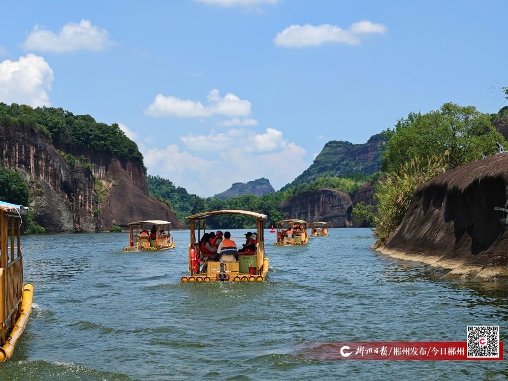 次日行程聚焦丹霞碧水。考察團登上被譽為“被上帝遺忘之地”的高椅嶺,赤紅巖壁、碧綠湖水與險峻龍脊構(gòu)成的強烈視覺畫卷鋪陳眼前,旅行商們沿步道小心探行,討論著如何將這一獨特地貌融入韓國徒步產(chǎn)品。轉(zhuǎn)場飛天山翠江旅游區(qū),考察團成員乘竹筏穿行九龍水寨,乘游船覽翠江兩岸風光,沉浸式體驗“人在畫中游”的詩意。