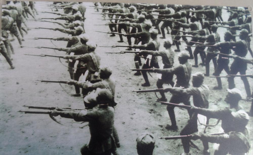▲百團大戰(zhàn)中,隸屬于山西青年抗敵決死隊第一縱隊的25團8連奮勇殺敵,打破了八路軍拼刺刀拼不贏日軍的神話。1940年11月,八路軍總部授予8連“白刃格斗英雄連”榮譽稱號。這是抗戰(zhàn)時期,8連官兵苦練刺殺(資料照片)。
