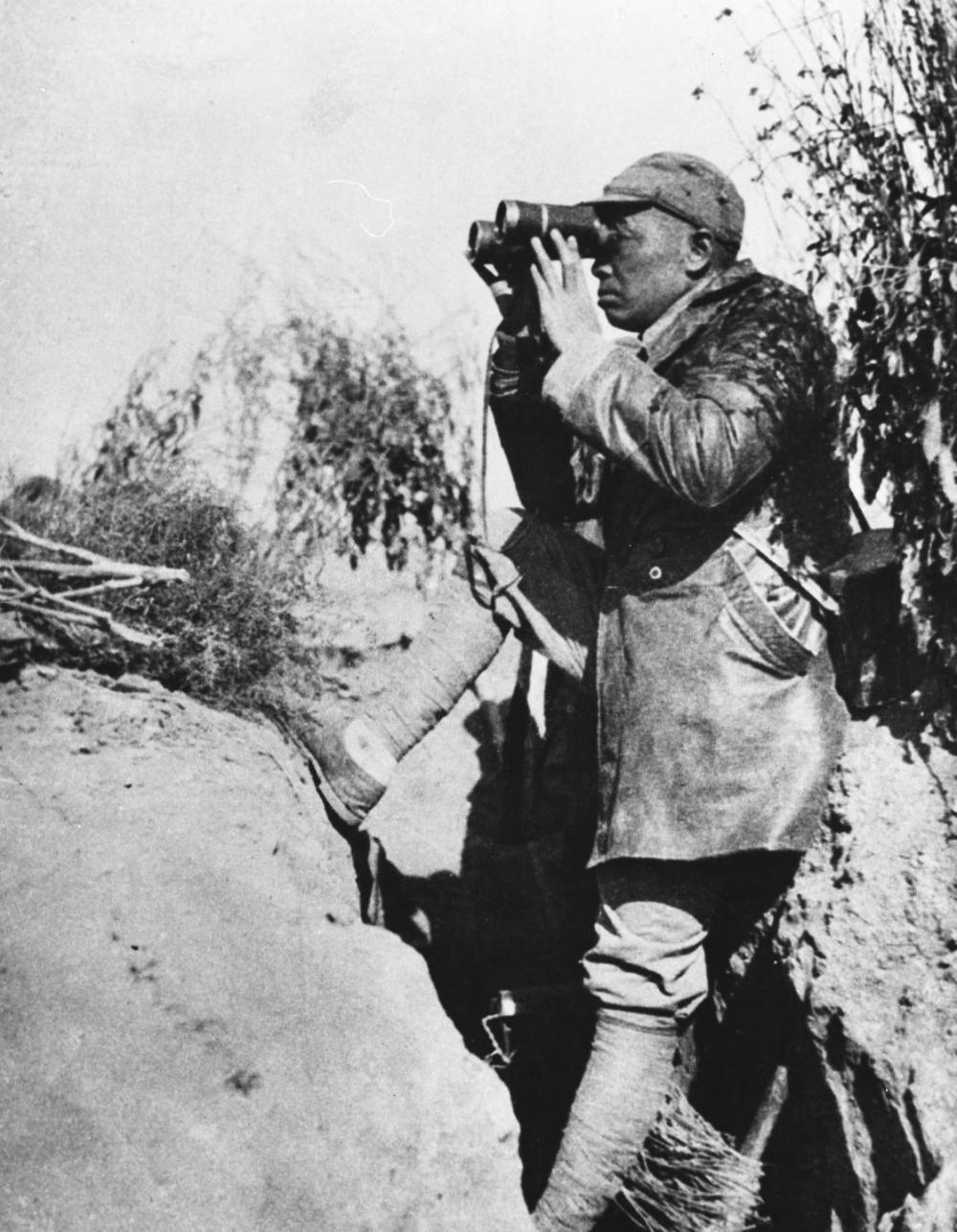 ▲百團大戰(zhàn),是抗日戰(zhàn)爭中八路軍在華北地區(qū)發(fā)動的一次規(guī)模最大、持續(xù)時間最長的進攻戰(zhàn)役,先后有105個團約20余萬人參加,僅前3個半月,就作戰(zhàn)1824次,斃傷日、偽軍2.58萬人,俘虜1.8萬余人。這是彭德懷身處前線指揮百團大戰(zhàn)(中國照片檔案館館藏)。