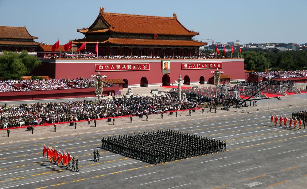 ▲2015年9月3日,中國人民抗日戰(zhàn)爭暨世界反法西斯戰(zhàn)爭勝利70周年紀念大會在北京隆重舉行。這是“白刃格斗英雄連”英模部隊方隊接受檢閱。