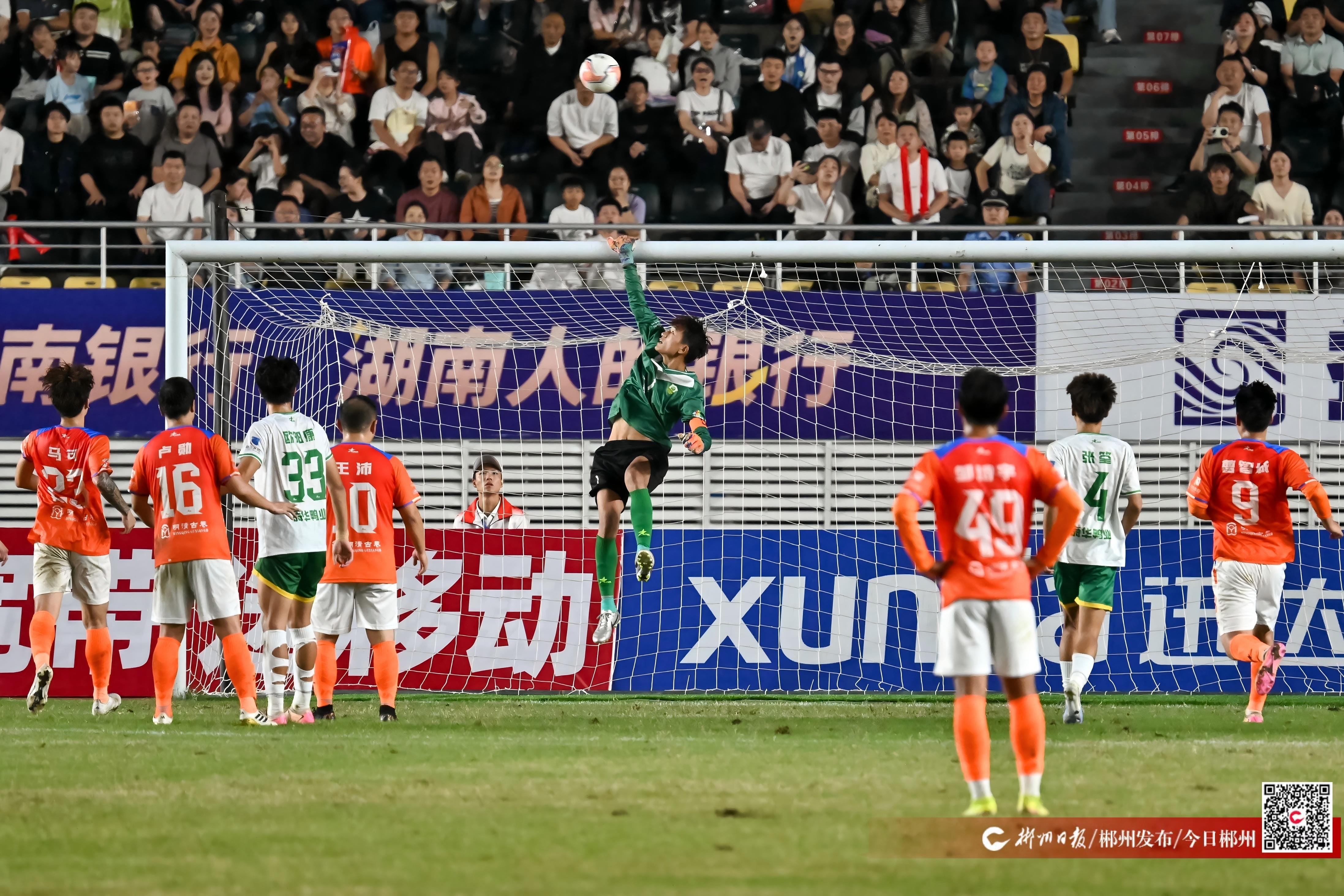 9月27日,郴州隊(duì)?wèi)?zhàn)益陽隊(duì),郴州隊(duì)守門員劉翔奮力救球,多次化險(xiǎn)為夷