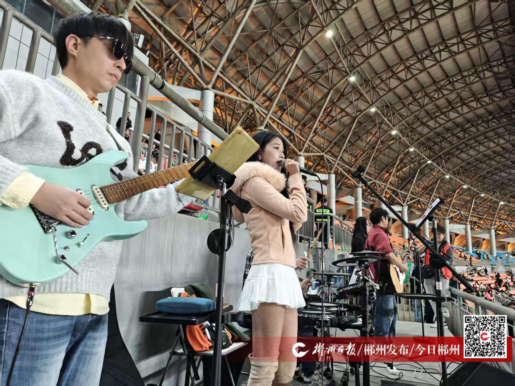 “相比于第一次表演,這次因為吸取了一些經(jīng)驗,我們希望可以表現(xiàn)得更全面、更出彩,讓大家更喜歡我們這支樂隊,也更喜歡郴州這座城市?!瘪R蕓蕓說,“音樂充滿力量,我們想用熱血的歌聲為郴州隊注入能量,祝愿郴州隊賽出風(fēng)格、賽出水平,郴州必勝!”