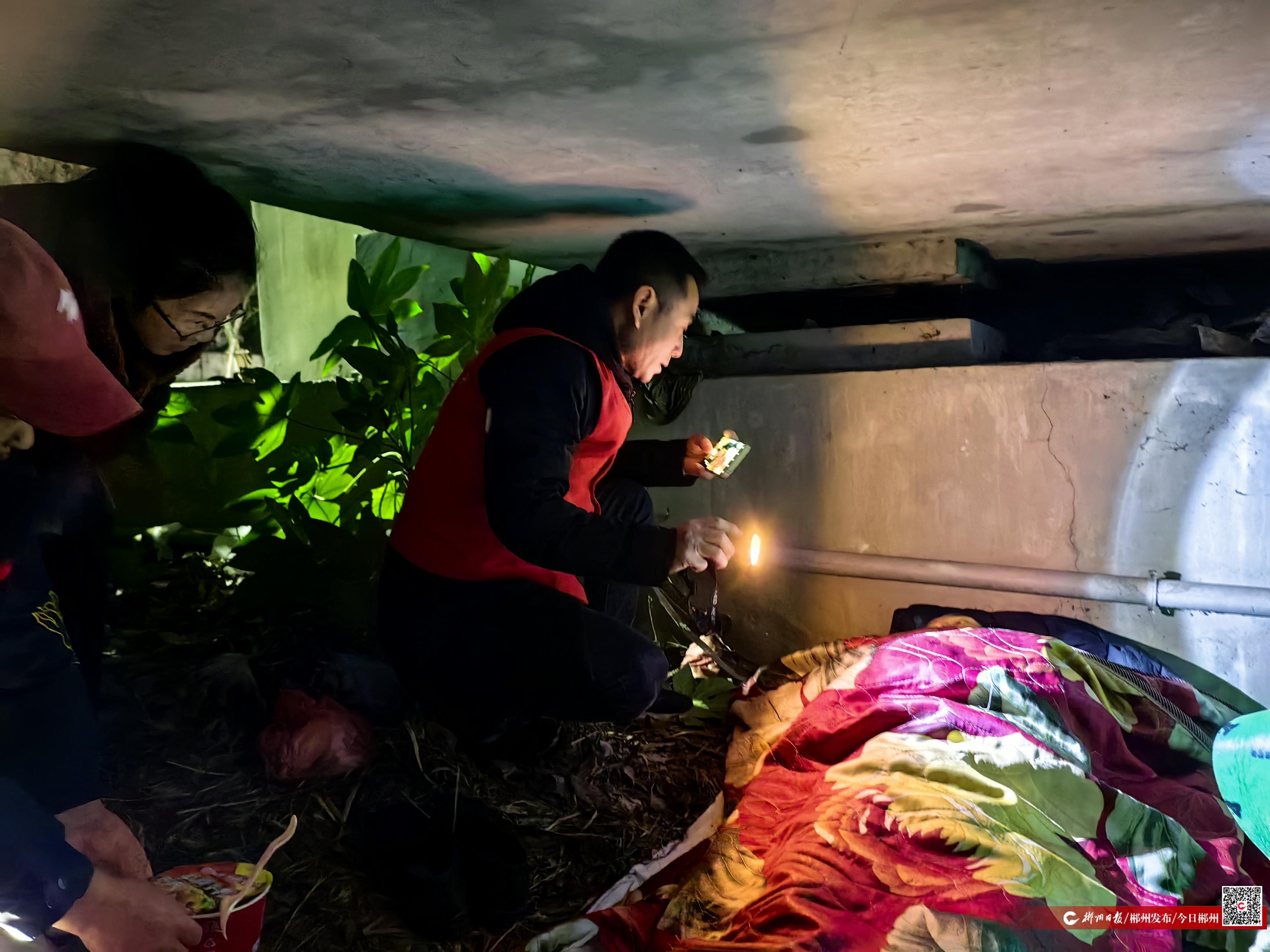 1月20日晚,郴州迎來降雪,氣溫驟降。蘇仙區(qū)志愿者聯(lián)合會“讓愛回家”項目組的志愿者像往常一樣,帶上棉衣、方便面、熱水瓶等物資,頂風(fēng)冒雪穿梭在郴州火車站、北湖公園、市汽車總站、市五嶺廣場等重點區(qū)域,對主次干道、橋梁涵洞、廢棄房屋等地開展夜間巡查。當晚,他們在一處高架橋下的灌木叢中,發(fā)現(xiàn)一名男子蜷縮在地,因寒冷而不停發(fā)抖,神情恍惚,語言表達不清。志愿者立即上前輕聲安撫,并為他披上厚棉衣。經(jīng)耐心溝通得知,該男子來自永州市江華瑤族自治縣,已獨自在外流浪數(shù)日,且不愿前往救助站接受集中安置。