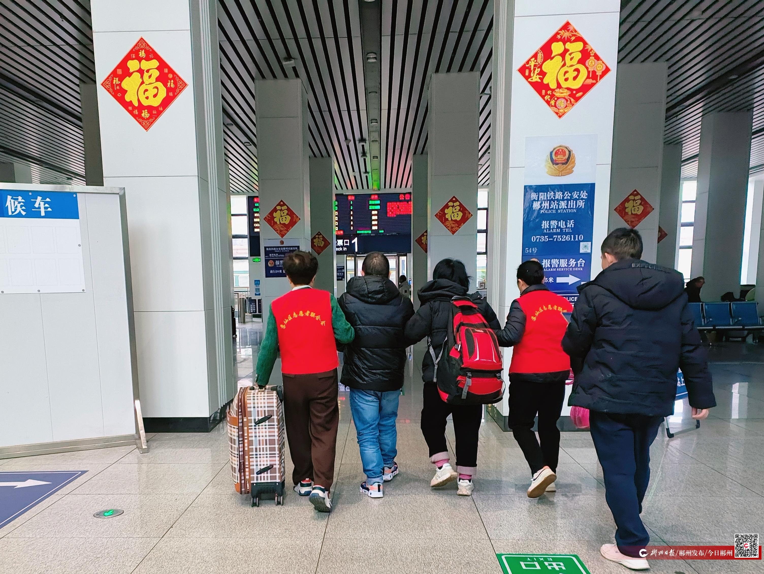 自農(nóng)歷正月初四起,近百名蘇仙區(qū)志愿者聯(lián)合會的志愿者堅(jiān)守郴州火車站,在單日客流量持續(xù)超萬人次的繁忙中,為旅客鋪就溫暖返程路。