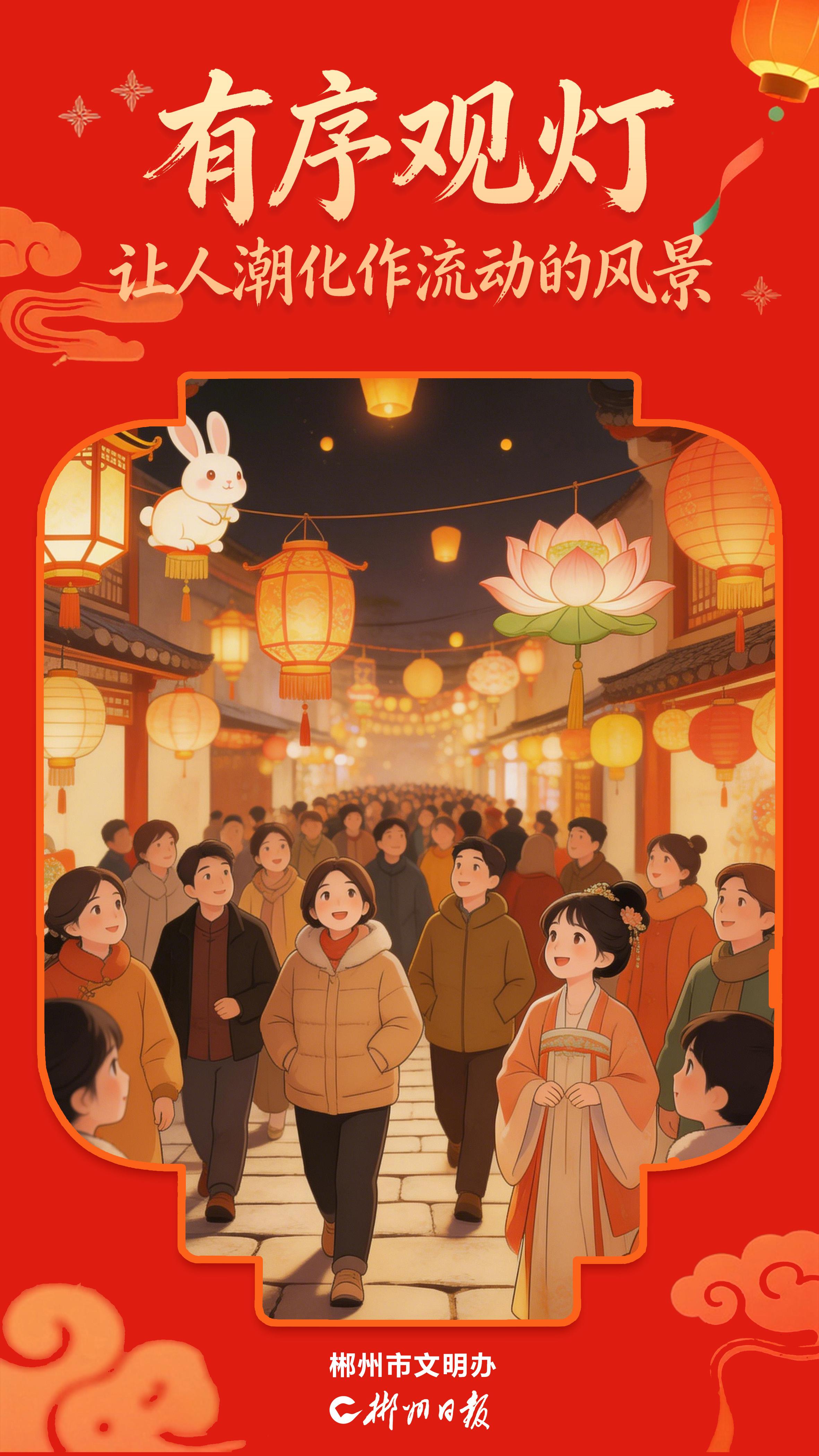 元宵圓滿,不止在碗中甜蜜的湯圓里,更在每一步于郴州街頭相遇的文明足跡里。這個元宵,讓我們的每一次相遇都透著暖意:有序觀燈,讓人潮化作流動的風(fēng)景;攜老扶幼,讓團(tuán)圓浸潤從容的歡喜;垃圾入箱,讓古巷映照皎潔的月光;賞一城燈火,也留下禮貌的步履。