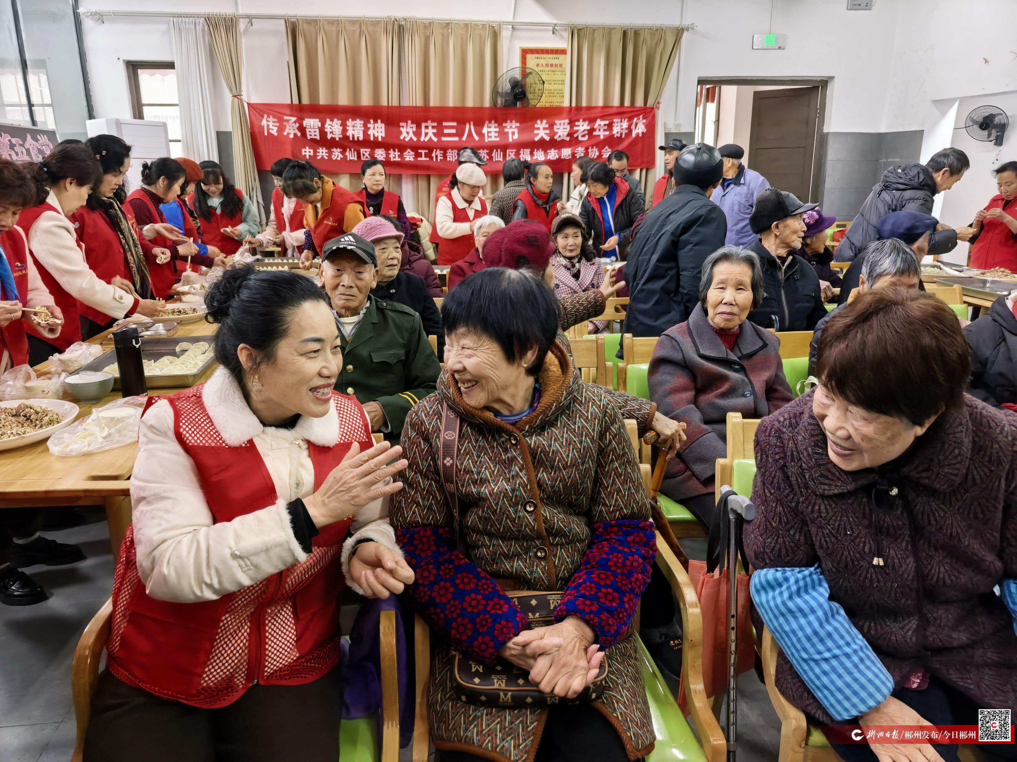 活動現(xiàn)場,京劇《紅燈記》、花鼓戲《劉??抽浴返荣N合老一輩情懷的文藝節(jié)目輪番上演,現(xiàn)場氣氛熱烈融洽。隨后,志愿者與老人們一起包餃子,大家分工協(xié)作、閑話家常,歡聲笑語間滿是溫馨。此次活動讓老人們感受到了社會的關(guān)愛與溫暖,弘揚(yáng)了服務(wù)人民、助人為樂的雷鋒精神。