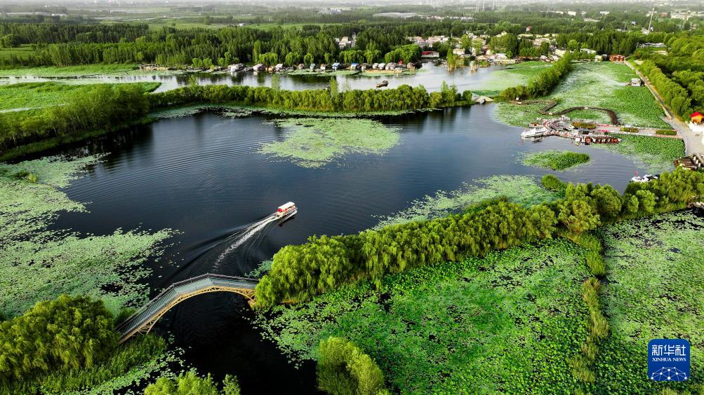 ▲山東省濟(jì)寧市微山縣微山湖二級(jí)壩濕地公園景色。(圖/新華社)